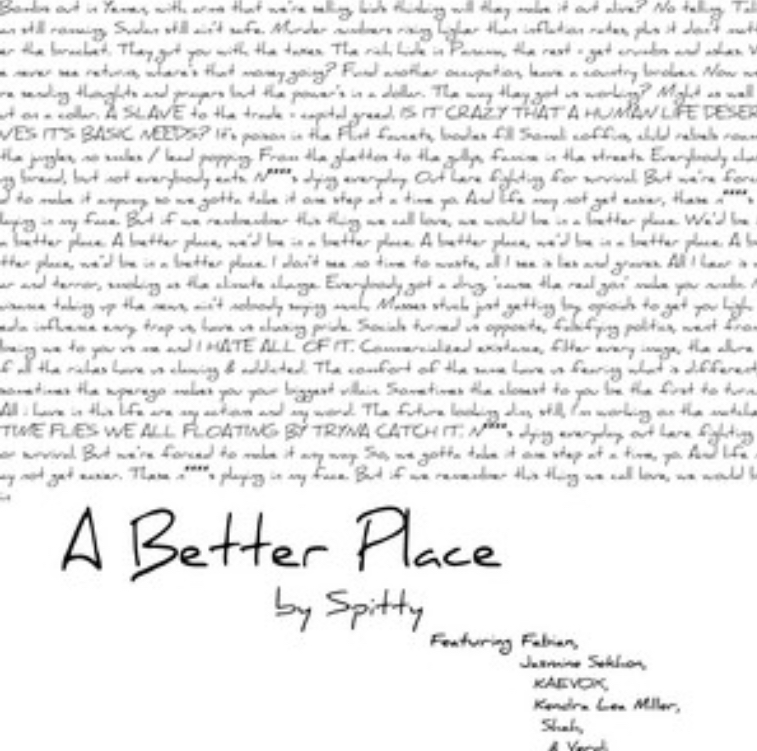 Brampton artist Spitty shares a powerful set of new visuals for his latest single, “A Better Place.” This record finds Spitty flexing his pen game with a passionate critique of society’s ills, reflecting on issues such as racism in North America, mass incarceration and overseas conflict among the others. To send this record over the top, Spitty enlisted the assistance of vocalists Fabian, Jasmine Sekhon, KAEVOX, Kendra Lea Miller, Shah and Verdi for the tracks impassioned hook. Spitty states that “A Better Place” is one of his most important records to date, urging his listeners to, “Be a positive factor towards the happiness of yourself, the people around you, and the world we live in. Make this world A Better Place.“