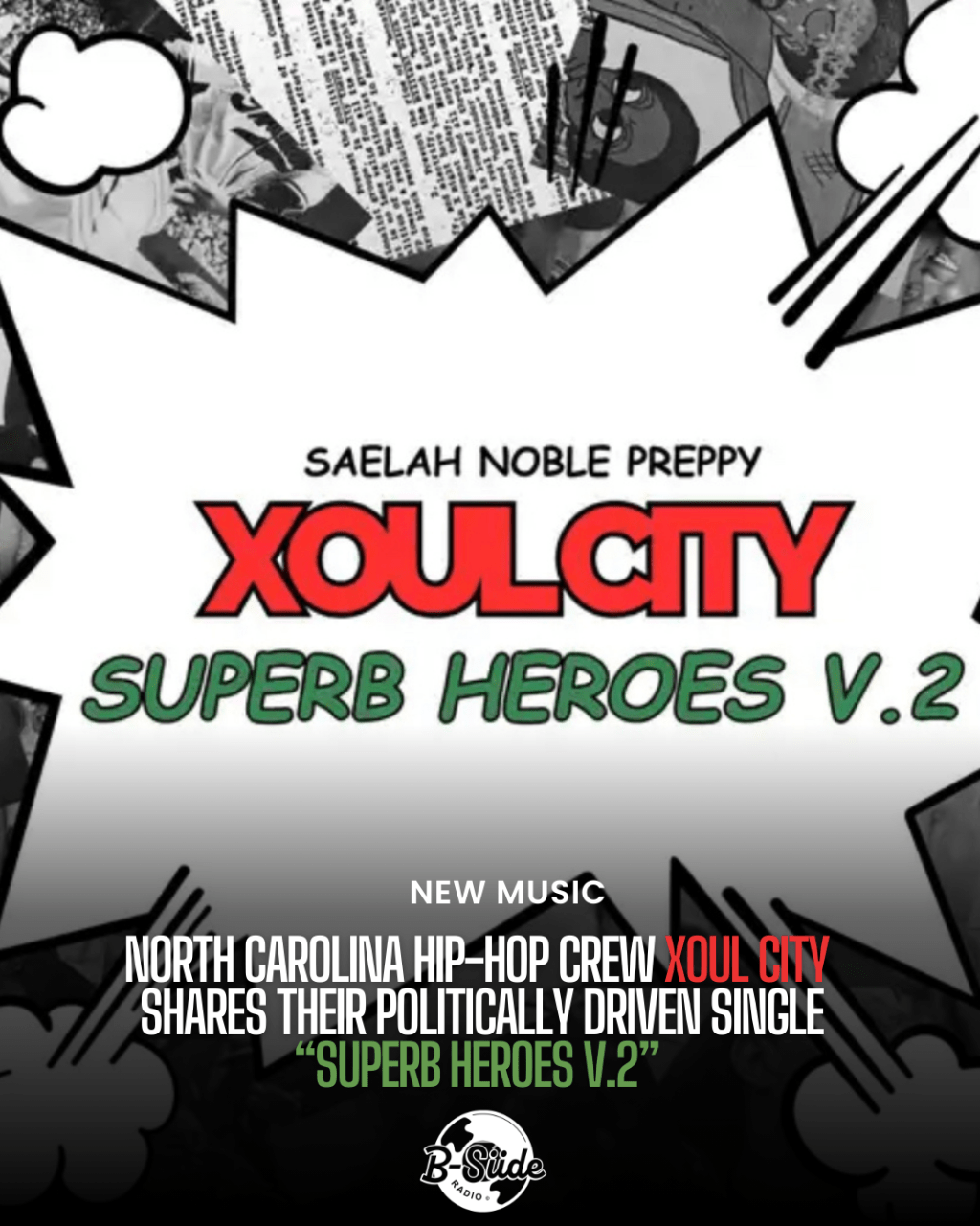 Xoul City, the dynamic Hip-Hop collective from North Carolina, shares their brand new politically driven single, “Superb Heroes V.2.” This latest release serves as a testament to the enduring power of Hip-Hop as a means for social commentary and reflection. With their signature blend of hard hitting lyricism and soulful beats, the latest from Xoul City is a thought provoking track that pays tribute to the courage and resilience of civil rights leaders of the past.